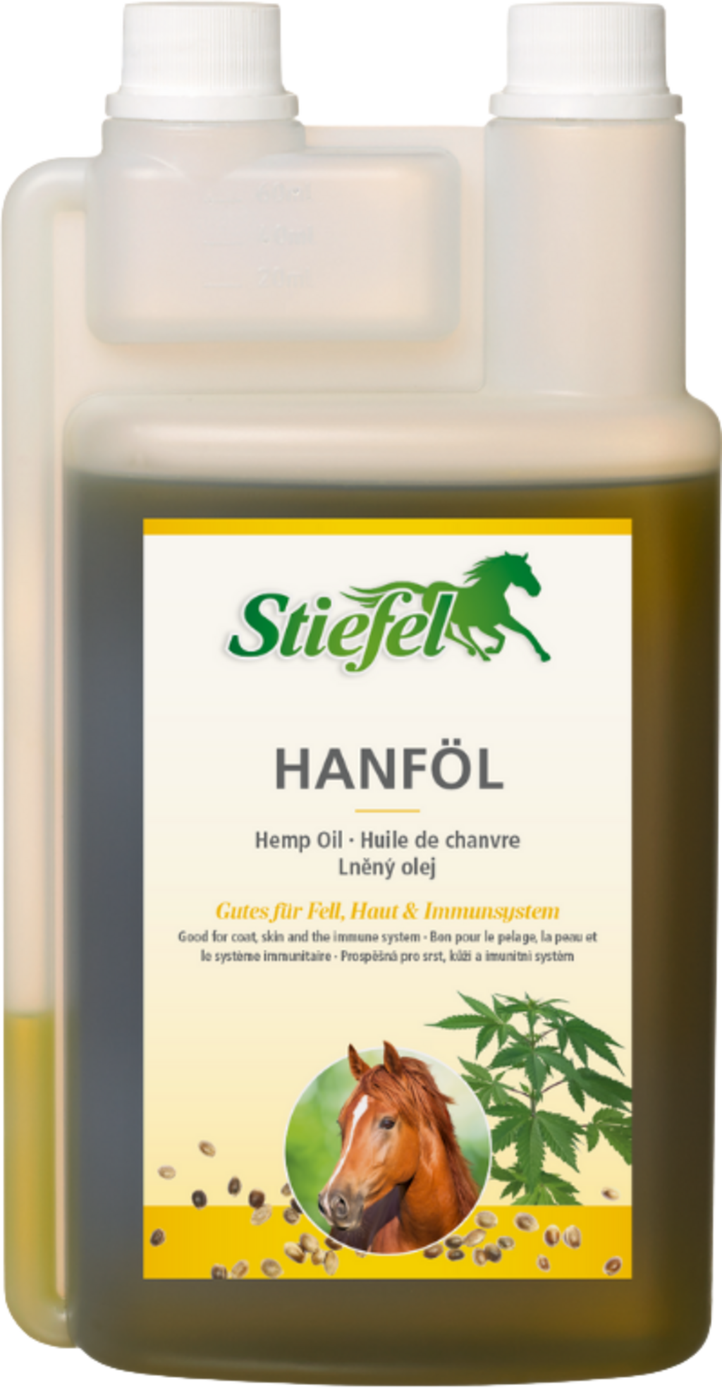 Stiefel Hemp Oil is a 100% pure natural product and a source of many valuable fatty acids for horses of all ages and phases of life. The ingredients can improve the horse's skin and coat and strengthen the horse's defence system.