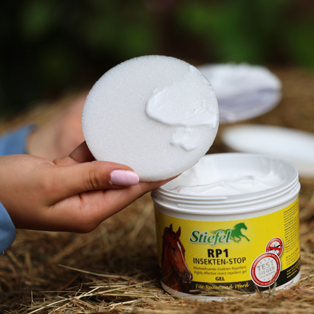 Stiefel RP1 Insect Stop Gel is a highly effective insect repellent with active tick and insect protection in gel form in compliance with biocide regulations. Stiefel RP1 Insect Stop Gel is particularly suitable for sensitive areas and horses who are sensitive to sprays as the gel is applied to the horse with the sponge included with the product. Stiefel RP1 Insect Stop Gel does not contain alcohol and is therefore also suitable for horses with eczema.
