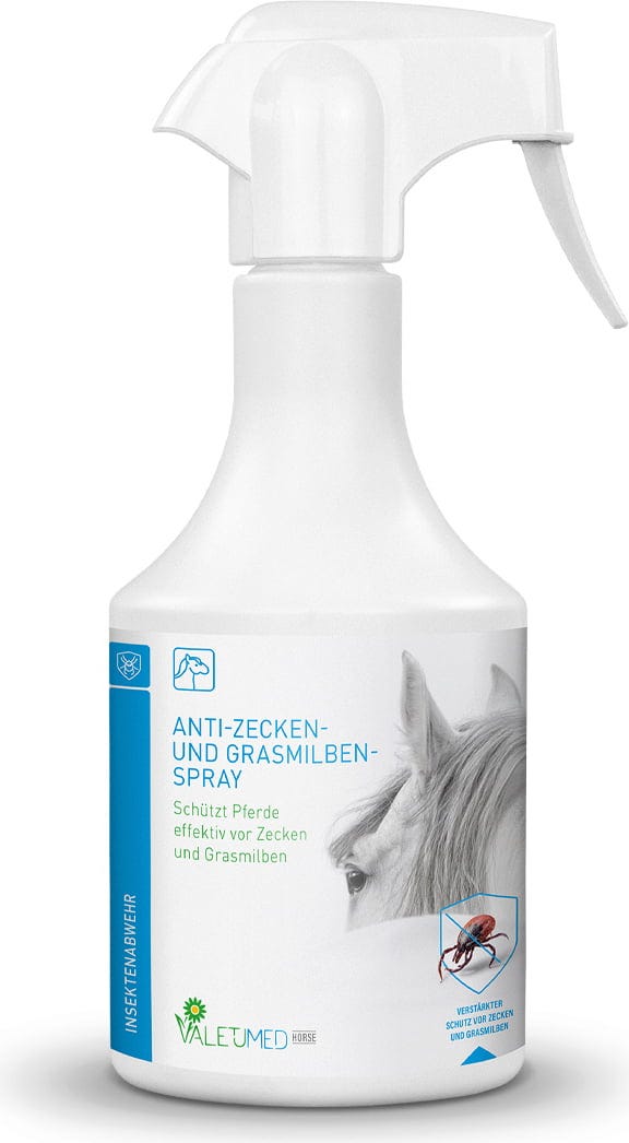During the summer months, insects often make life difficult for your horse. This spray provides reliable protection against troublesome pests, particularly ticks and harvest mites, which often remain hidden on the horse.