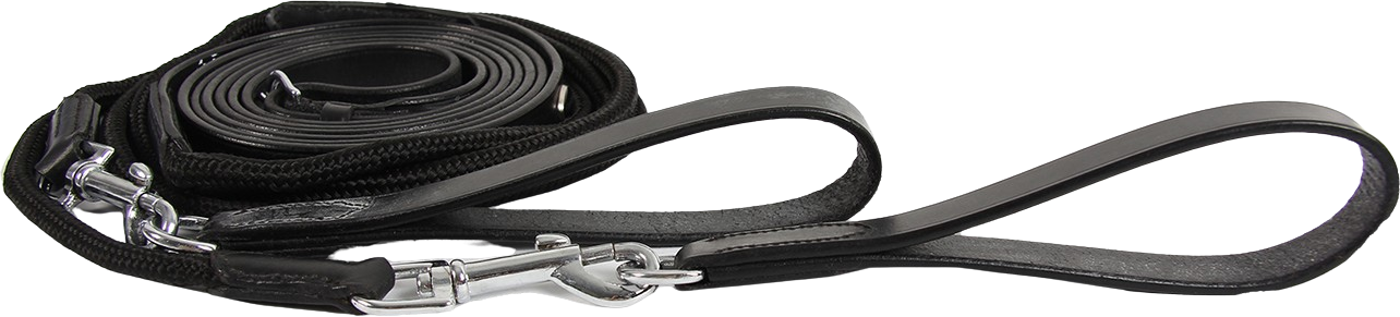 This draw rein by Waldhausen combines high-quality leather straps with a round-braided nylon rope. The material is designed to glide smoothly through the bit rings, ensuring ease of use and responsive contact. For quick and convenient handling, both ends feature sturdy leather loops and snap hooks, allowing you to attach or detach the reins effortlessly whenever needed.