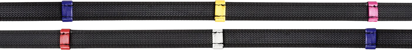 Part of the high-quality range of reins by Waldhausen, these reins feature premium quality leather and excellent workmanship. A rubber coating incorporated in the material ensures a non-slip, secure grip. The special feature is the bars in various bright colours which serve as visual and tactile markings, making it easier to correct the rein size and maintain an even contact. The reins are rounded out with a practical martingale slider and elegant stainless steel buckles.